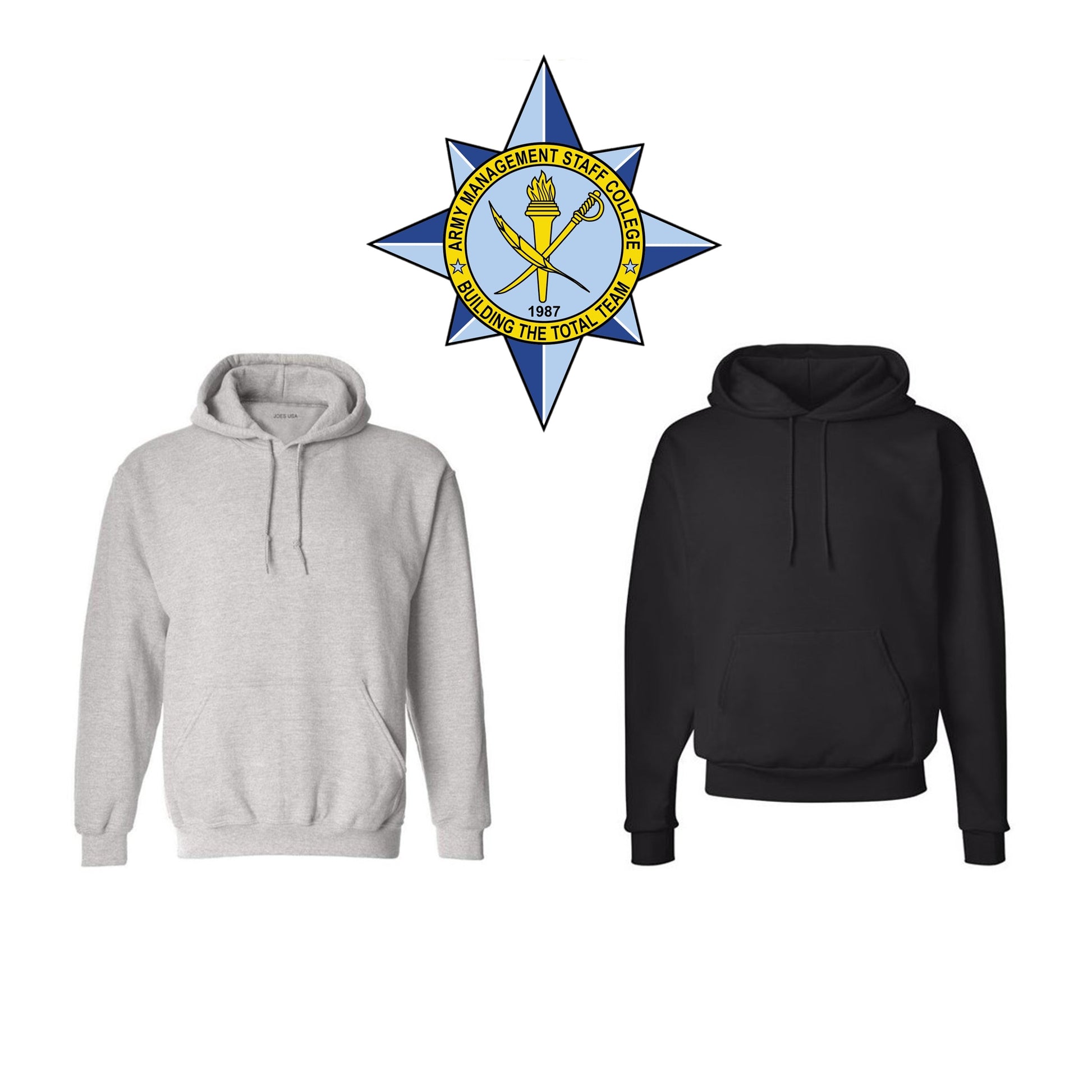 Hooded sweatshirt featuring the crest of the Army Management Staff College (AMSC) embroidered on the wearer's left chest. This is a special order item. Special orders are usually fulfilled within one month, but some items take longer to fulfill. Please contact the CGSC Foundation with questions - office@cgscf.org or (913) 651-0624.