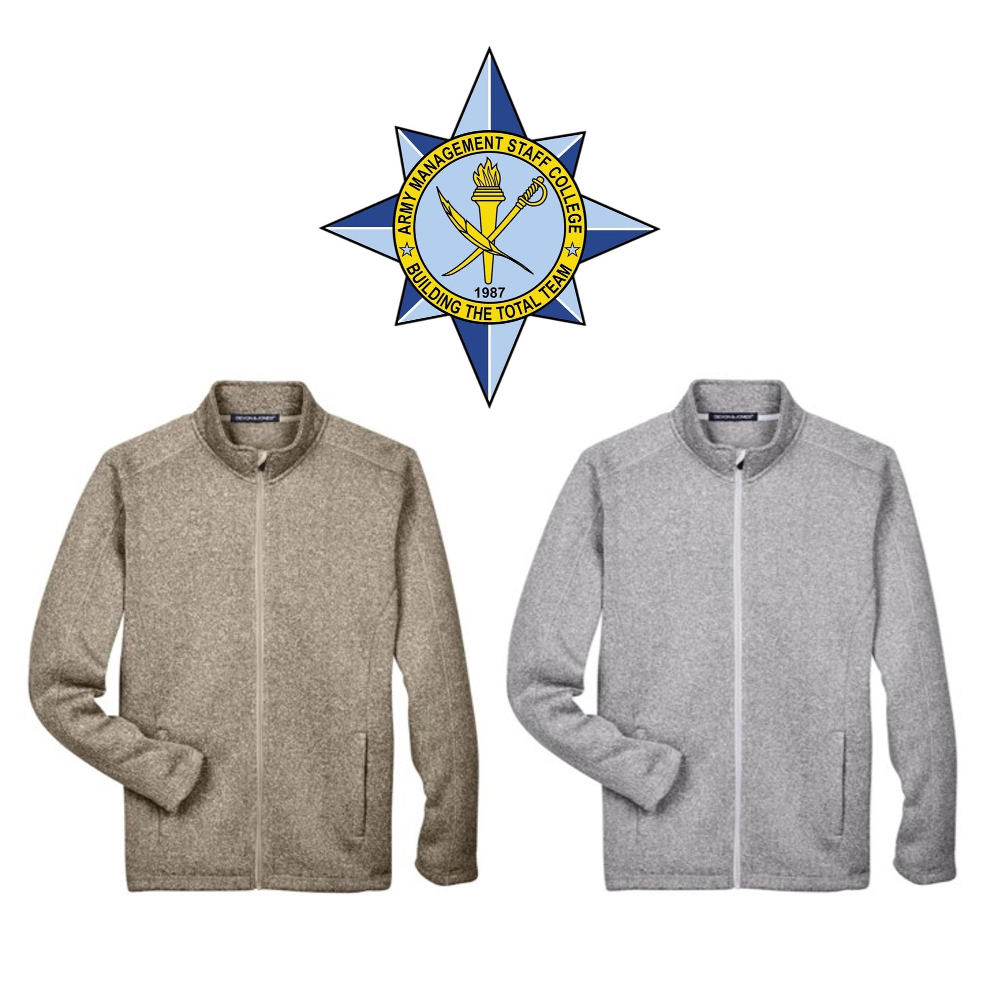 Knit zip-up sweater featuring the crest of the Army Management Staff College (AMSC) embroidered on the wearer's left chest. Pockets on either side. This is a special order item. Special orders are usually fulfilled within one month, but some items take longer to fulfill. Please contact the CGSC Foundation with questions - office@cgscf.org or (913) 651-0624.