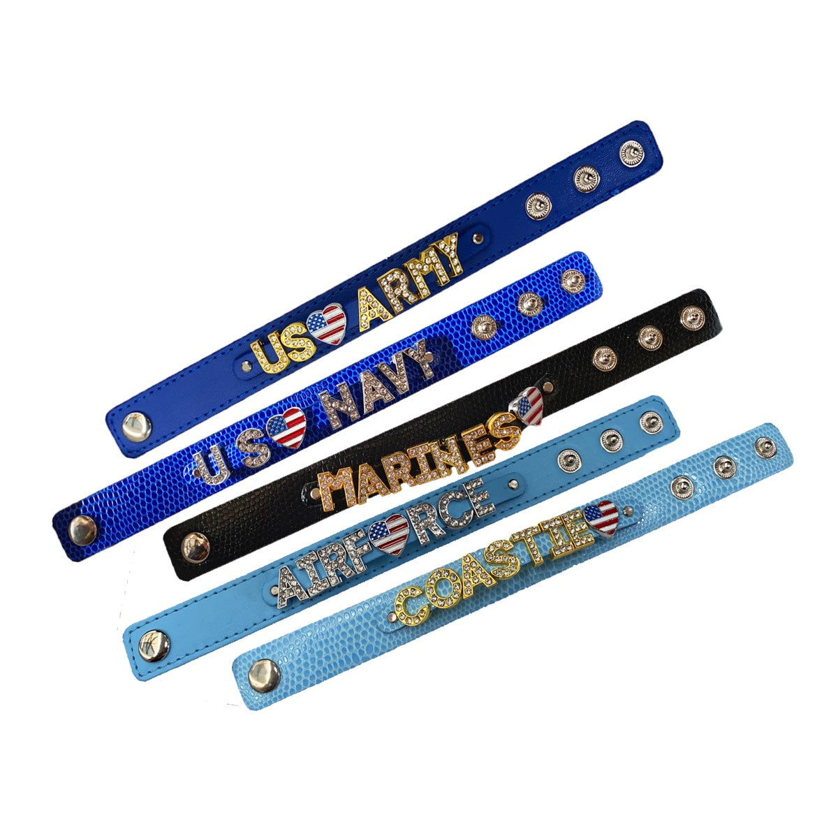 Vegan leather snap bracelet with U.S. military branches. Made by local jewelry artist After Nine Design.