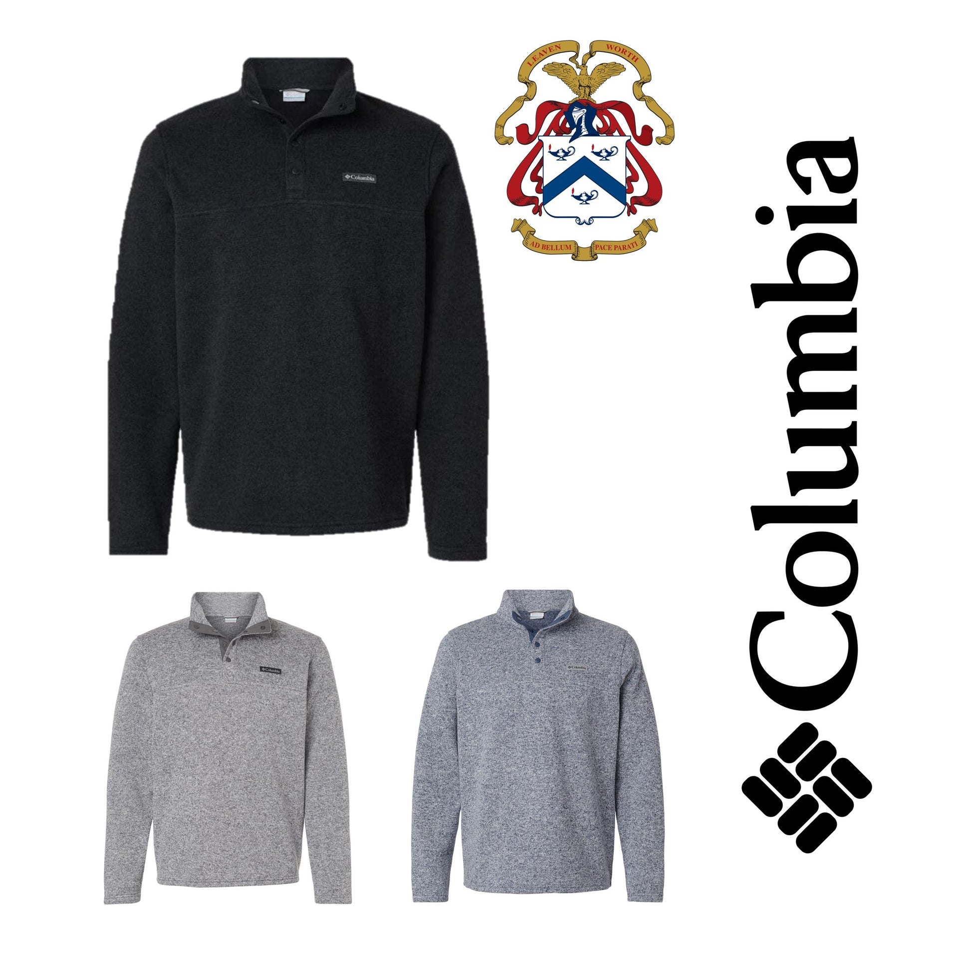 Columbia brand quarter snap pullover sweater featuring the crest of the U.S. Army Command and General Staff College (CGSC) embroidered on the wearer's chest. This is a special order item. Special orders are usually fulfilled within one month, but some items take longer to fulfill. Please contact the CGSC Foundation with questions - office@cgscf.org or (913) 651-0624.