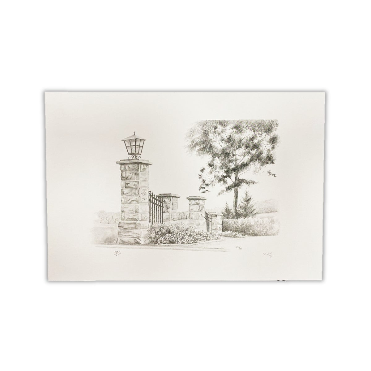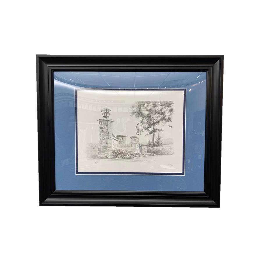 Black and white print of Fort Leavenworth's front gate drawing by Shari - 16.5 x 11 in.