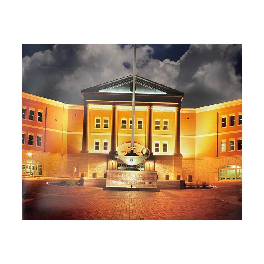 Day and night photo prints of the U.S. Army Command and General Staff College (CGSC) Lewis and Clark Building by Merry Thaden - 14 x 11 in.
