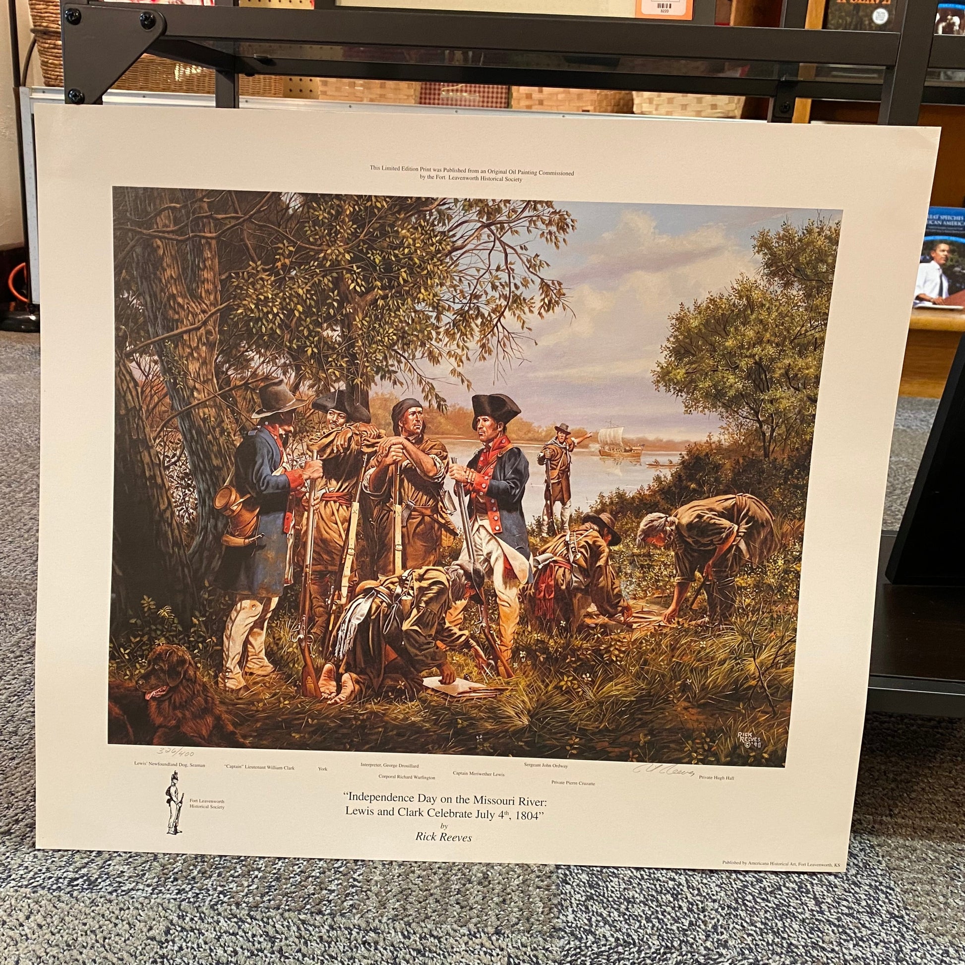 Full color print of "Independence Day on the Missouri River: Lewis and Clark Celebrate July 4th, 1804" by Rick Reeves and - 21.25 x 18.25 in.