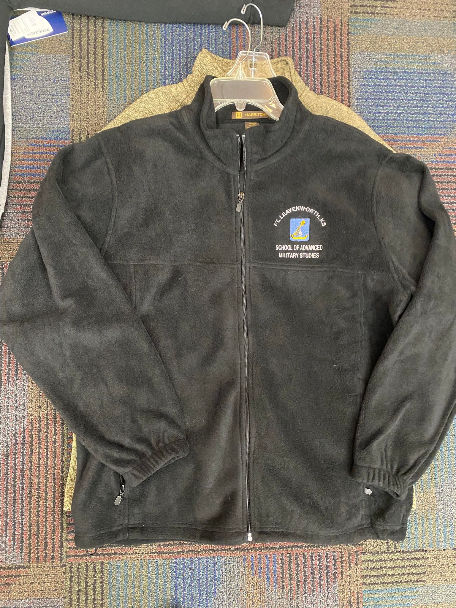 Fleece zip-up jacket featuring the crest of the School of Advanced Military Studies (SAMS) embroidered on the wearer's left chest. Pockets on either side. This is a special order item. Special orders are usually fulfilled within one month, but some items take longer to fulfill. Please contact the CGSC Foundation with questions - office@cgscf.org or (913) 651-0624.