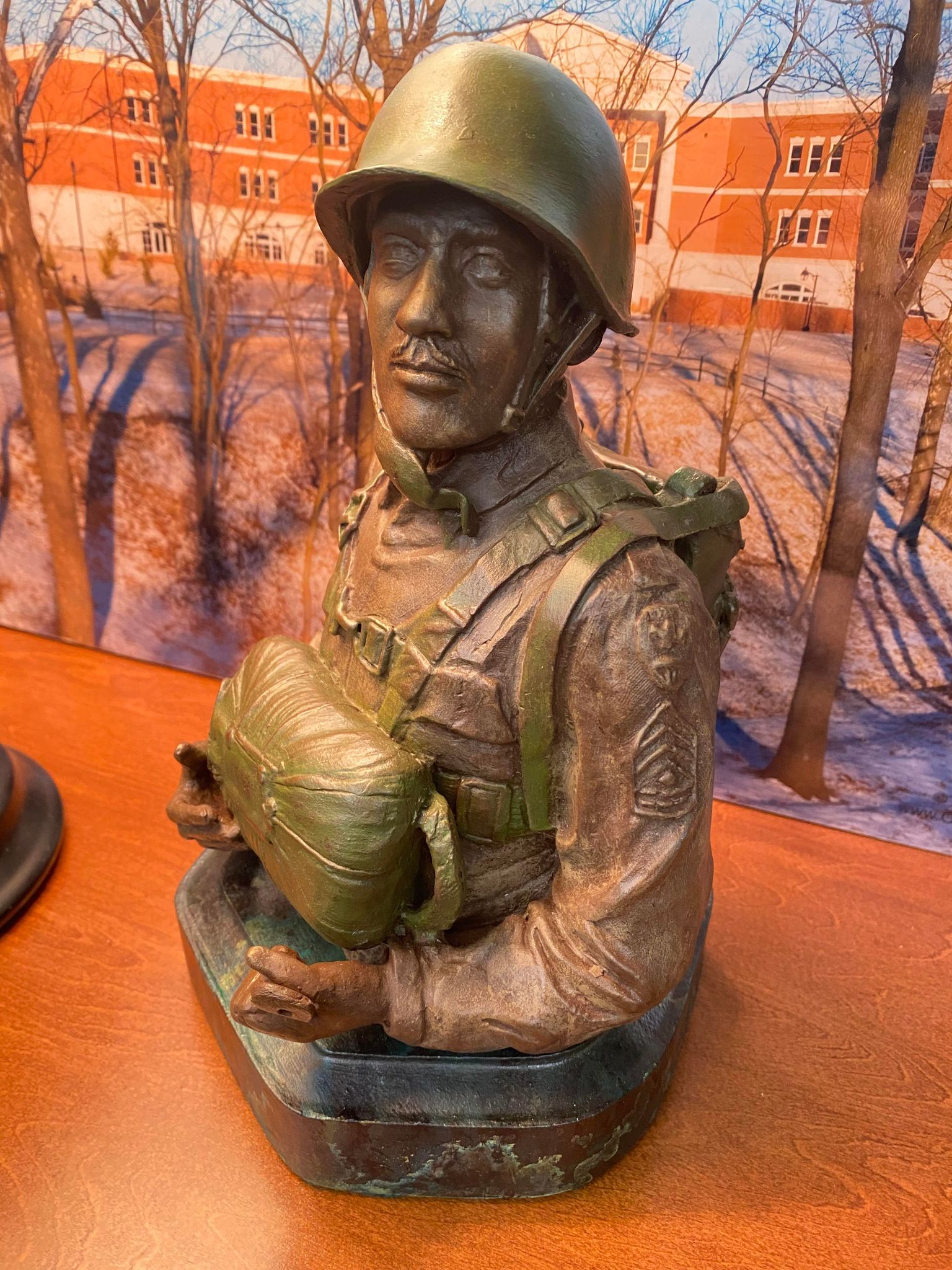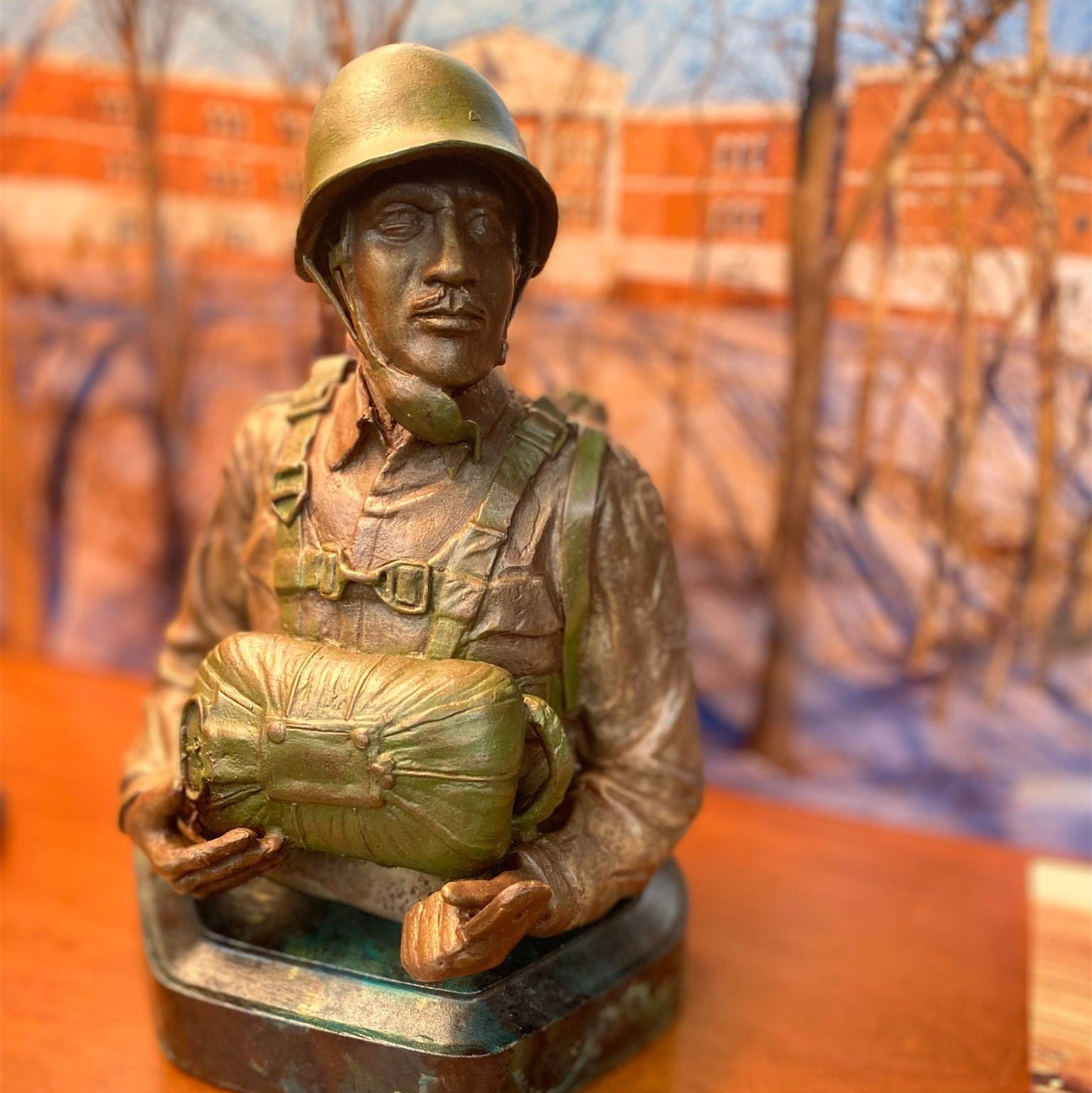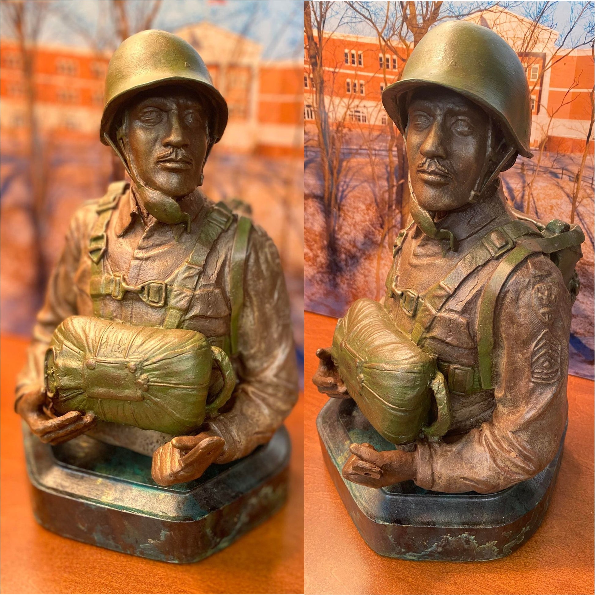 "Triple Nickel" Soldier resin cast statue. Approximate dimensions 7 x 10.5 in. at its widest and tallest points.