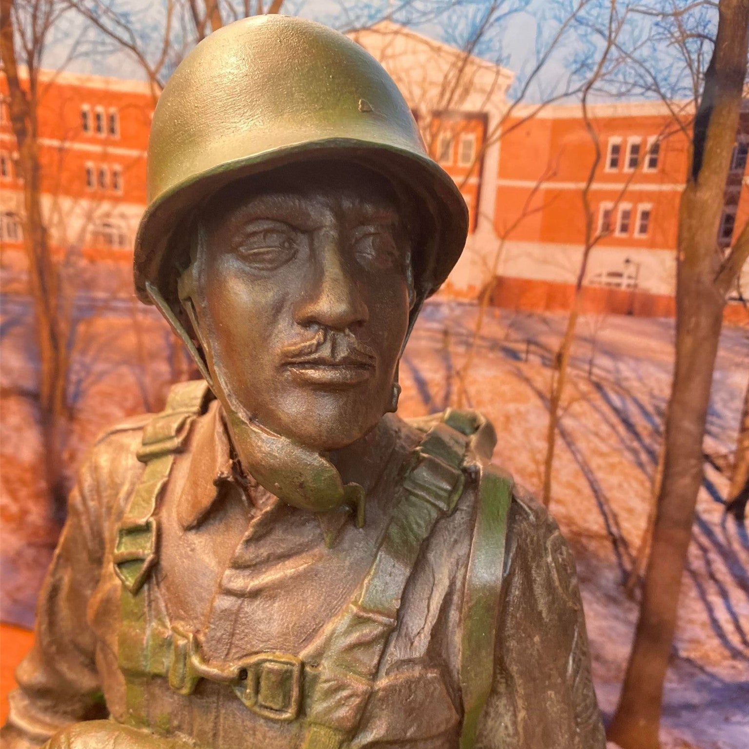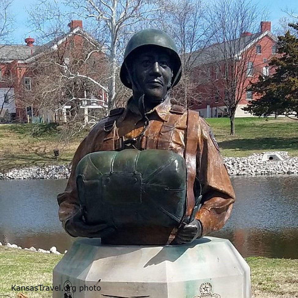 The monument is modeled after 1ST SGT Walter Morris, the first person to be assigned and selected for the 555th, and was erected in 2006 by 555th Parachute Infantry Association and Fort Leavenworth.