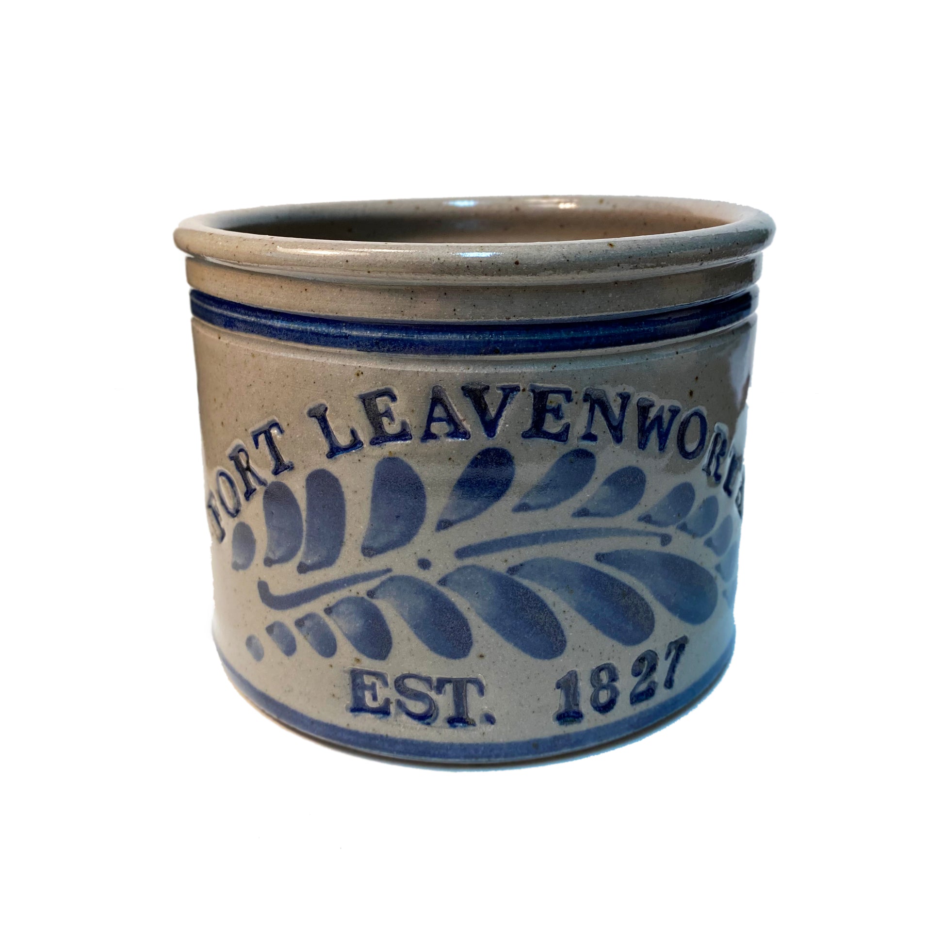 One quart salt crock by Westerwald Pottery. Approximately 4.5 inches tall and 6 inches wide. Hand made in the USA.
